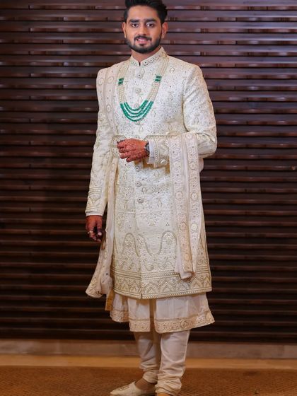 I make custom Indian wedding and ethnic outfits for men, tailored to your style, fit, and event, with detailed handwork and a wide choice of fabrics.