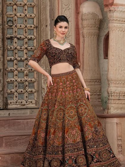 For the bride who dreams of a timeless wedding look, this collection is for you. It features our most stunning bridal lehengas in classic reds, deep maroons, and other royal shades, all adorned with intricate zardozi, velvet, and traditional embroidery.