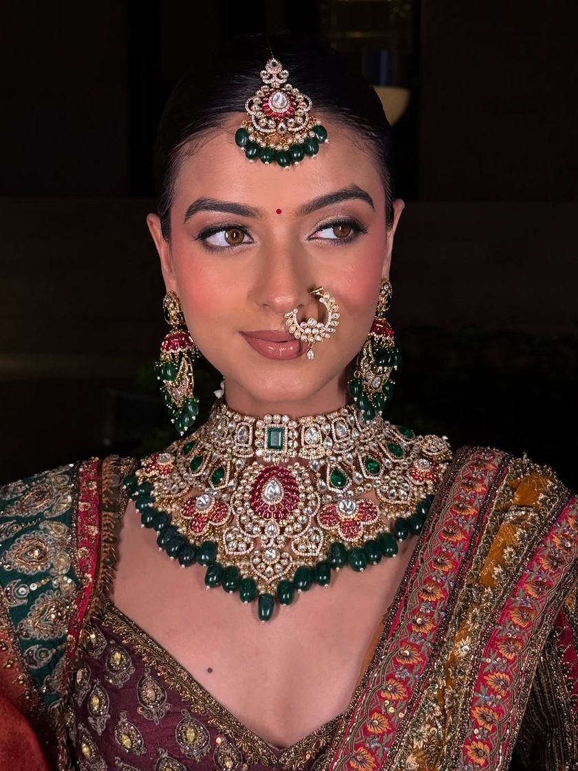 For the main wedding day, get the complete queen look. This collection features our most magnificent Kundan, Polki, and Meenakari sets, including everything from statement necklaces to matha patti, nath, and hathphool.