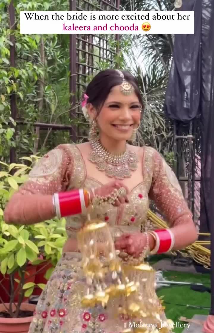 It's the little details that complete the look. We offer a beautiful range of traditional accessories including temple jewellery, bridal choodas, and customizable kaleere to perfectly match your wedding attire.