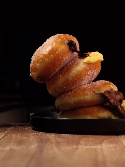 Discover our soft, pillowy Bomboloni, Italian-style doughnuts stuffed generously with fillings like chocolate custard, sea salt caramel, and coffee toffee. I also craft other Italian delights like the cream-filled Maritozzo.