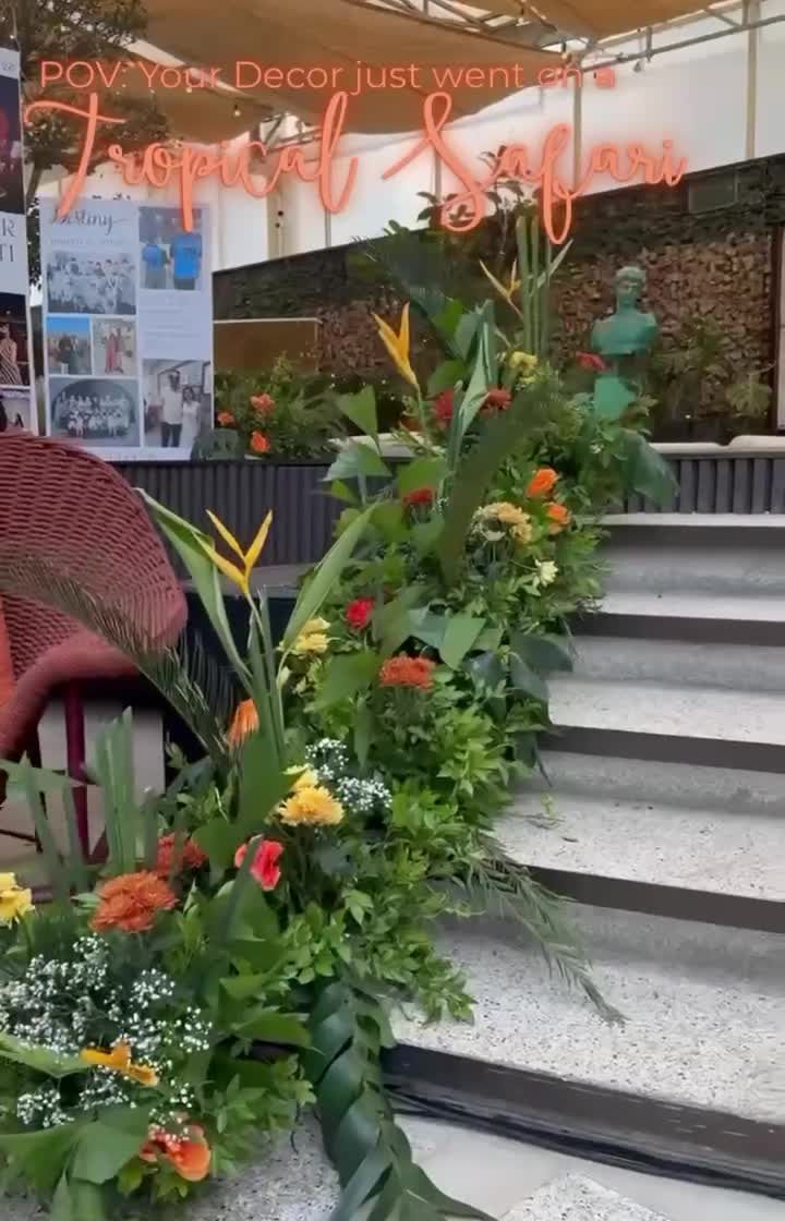 We go beyond just decor; we create entire worlds. For this 'Citrus Safari' reception, we blended a vibrant tangerine color palette with wild animal accents and lush tropical florals to create an unforgettable, immersive experience for the couple and their guests.