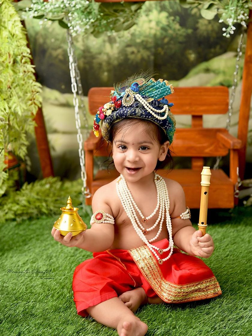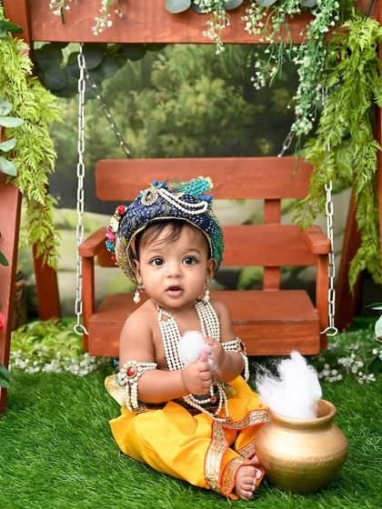 Celebrate your little one with a timeless and divine Little Krishna themed photoshoot. I provide beautiful, traditional outfits, peacock feathers, flutes, and charming backdrops to create magical portraits of your little Kanha. This is a perfect theme for milestones or Janmashtami.