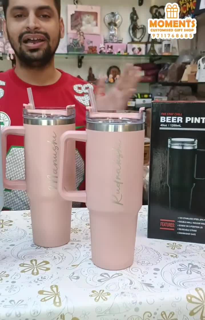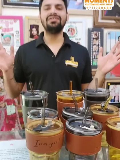 My range of drinkware includes steel temperature bottles, large tumblers, and stylish glass sippers with leather sleeves. I can engrave names or logos, making them ideal for corporate wellness gifts or personal use. I offer various styles and colors to fit any preference.