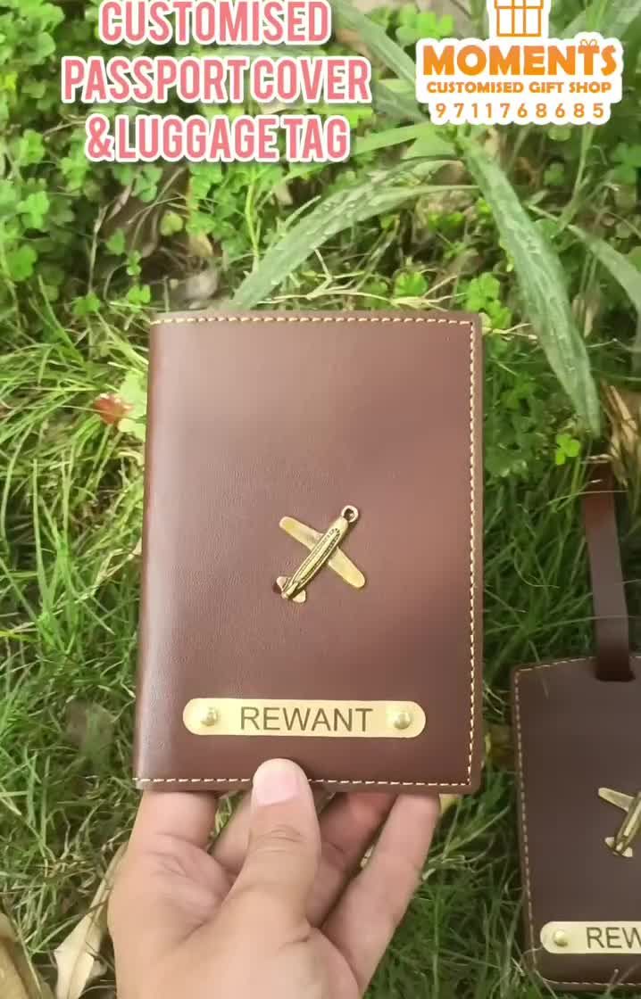 I create high-quality, personalized travel gear, including faux leather passport covers and matching luggage tags. Each item can be customized with a name and a choice of metal charms, making them a stylish and practical gift for frequent travelers or team offsites.