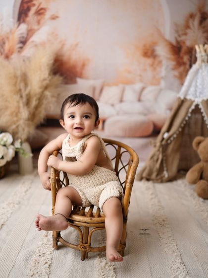 We specialize in capturing your child's precious developmental stages through creative themed photography sessions. Our focus is on memorable moments like first birthdays and cake smash celebrations, using playful props and engaging setups.