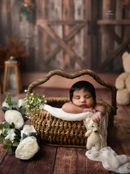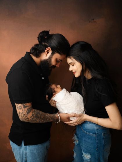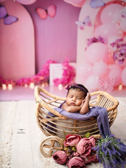 We do newborn photography in our Navi Mumbai studio with safe, clean setups, creative themes, and family inclusion, handled by a certified photographer.