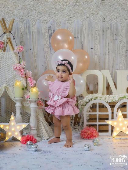 I specialize in capturing your baby's key developmental stages during their first year. My milestone sessions are playful and engaging, featuring themed setups with props like toys, balloons, and colorful backdrops.