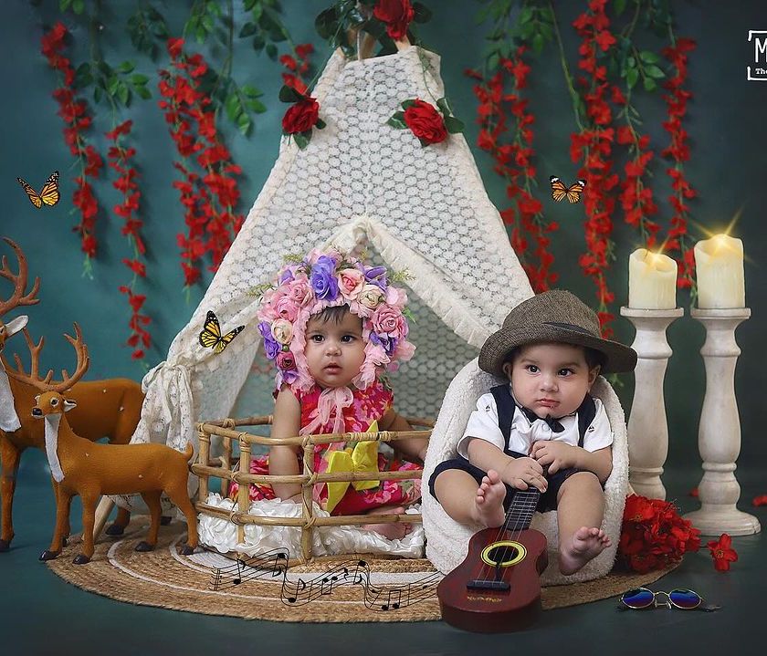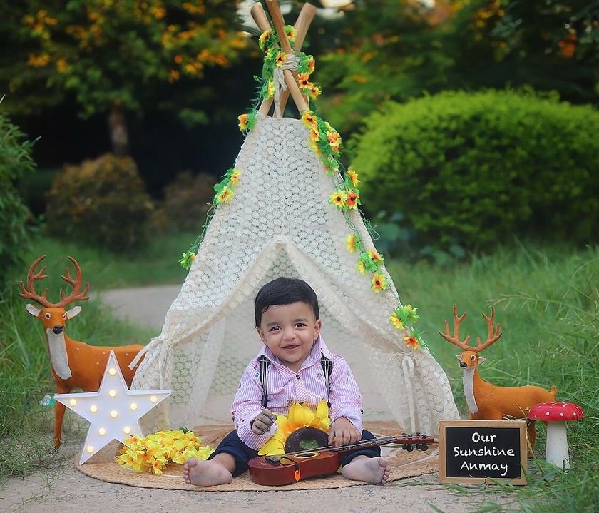 Let's take the fun outside! I love using the natural light and beautiful scenery of Delhi-Gurgaon's parks and gardens for photoshoots. We can set up a whimsical teepee, have a playful fruit bath on the grass, or simply capture your family enjoying the fresh air together.