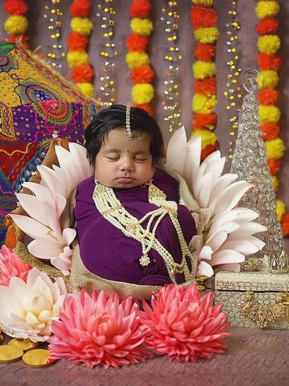 I love weaving our rich culture and festive traditions into photoshoots. We can celebrate Janmashtami with a little Krishna setup, capture the colours of Holi, or create a divine Devi look for Navratri. These sessions are a beautiful way to create memories that honor your family's heritage.