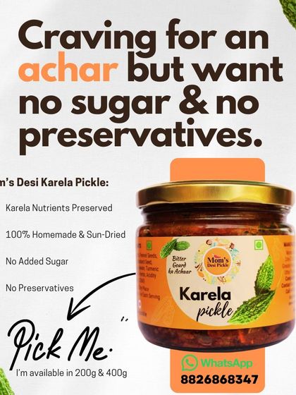 It all started with my maa’s cooking, that true ghar ka khaana (home food) vibe. Friends kept saying, 'Why not sell these pickles?' So, here we are—every jar is made by my mom, in our own kitchen, with her old-school Punjabi masalas. No machines, no shortcuts, just maa ke haath ka swaad (mom’s touch). It’s not just business, it’s sharing her love. Handmade, honest, and a bit nostalgic.