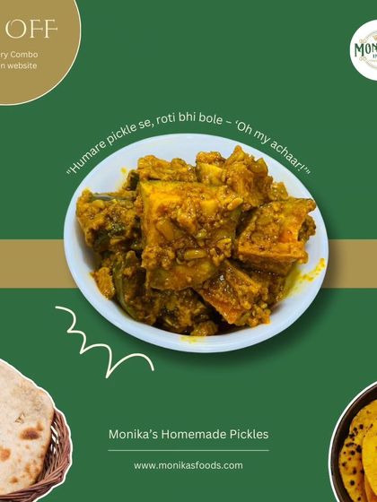 Homemade Pickles, Meals & Sweets - We make Punjabi Mango Pickle, Green Chilli, Lemon, Date Chikki, Besan Laddu, Pav Bhaji, and more.