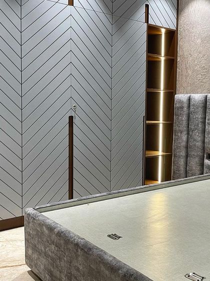 We believe storage should be both smart and stylish. We design and build custom modular wardrobes and walk-in closets that maximize space and reflect your personal taste, featuring modern details like chevron patterns, curved fluting, and integrated lighting.