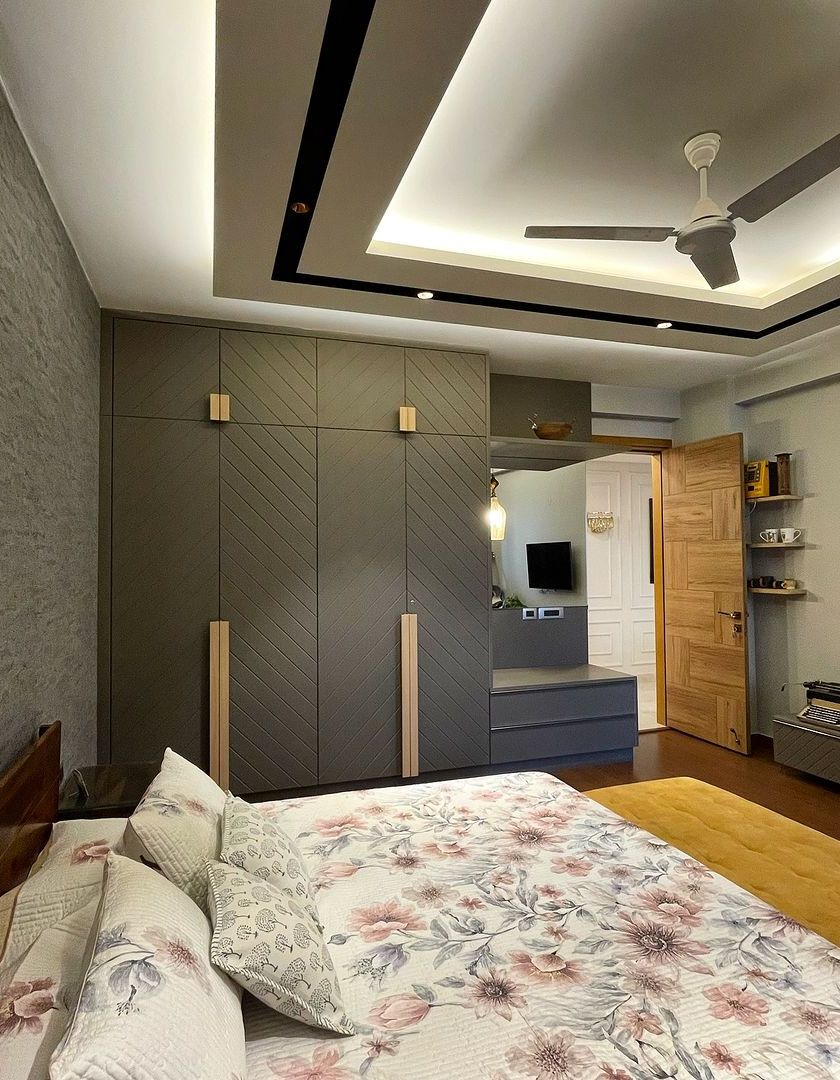 We design bedrooms to be personal sanctuaries, tailored to your preferred style and color palette. Our work includes creating cozy, classic spaces with tufted headboards, as well as modern rooms with bold grey and mustard themes, always with a focus on smart storage and multi-functional furniture.