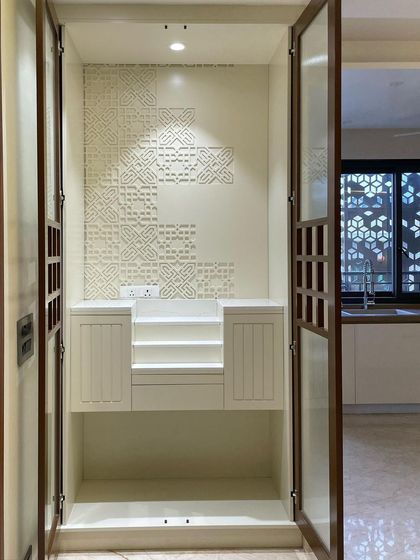 We design tranquil and beautiful home temples (mandirs) that integrate seamlessly into modern homes. Our designs range from compact units with intricate details to innovative solutions like sliding doors that create more space for ceremonies and family prayers.