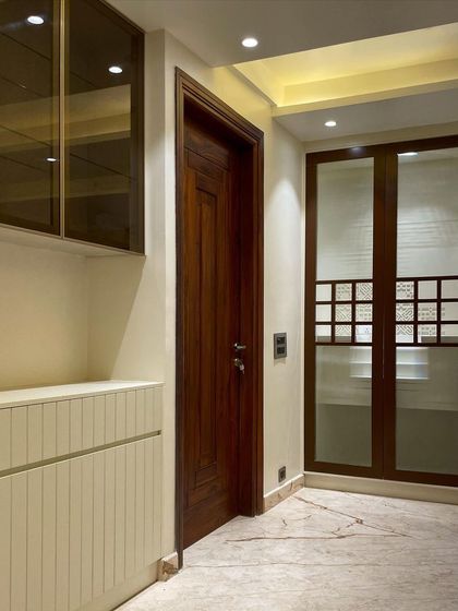 We specialize in creating luxurious modern homes with distinctive design elements like wainscoting, chevron patterns, and pastel palettes. Our architectural designs incorporate high-end materials including walnut, teakwood, and marble, while our exterior work features limestone, granite, and CNC metal jali for dynamic facades.