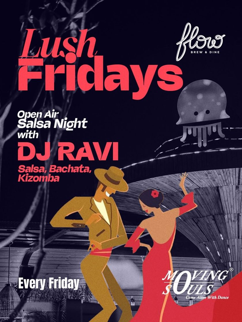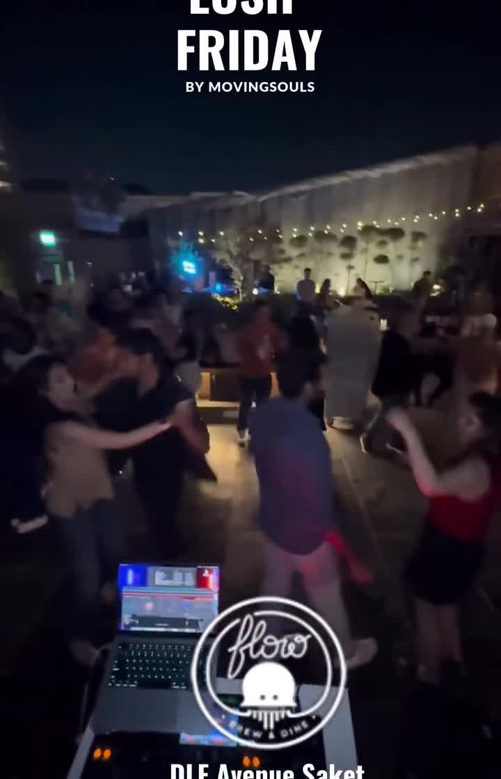 Every Friday, I host my socials on the beautiful open-air terrace at Flow in Saket. It's all about the energetic atmosphere, with string lights, great music, and a crowd that just wants to dance.