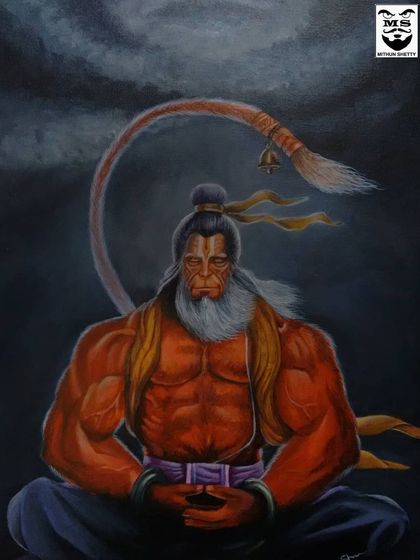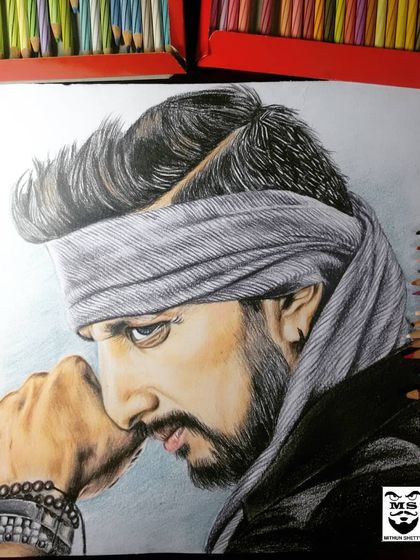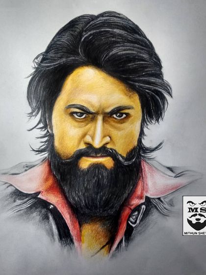 Hey, Mithun here. I never went to those big art schools, just me, my sketchbook, and a lot of trial and error. Started with charcoal sketches of actors like The Rock and Kiccha Sudeep, then got hooked on VFX and digital stuff. My roots are Tulunad, Udupi – so you’ll spot Yakshagana and Kantara tribute painting in my work. Sometimes it’s a huge canvas, sometimes a pebble. Art is my way of showing where I’m from. Jai Hanuman.