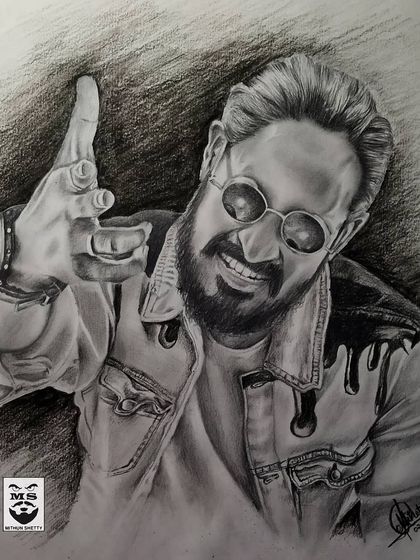 Hey, Mithun here. I never went to those big art schools, just me, my sketchbook, and a lot of trial and error. Started with charcoal sketches of actors like The Rock and Kiccha Sudeep, then got hooked on VFX and digital stuff. My roots are Tulunad, Udupi – so you’ll spot Yakshagana and Kantara tribute painting in my work. Sometimes it’s a huge canvas, sometimes a pebble. Art is my way of showing where I’m from. Jai Hanuman.