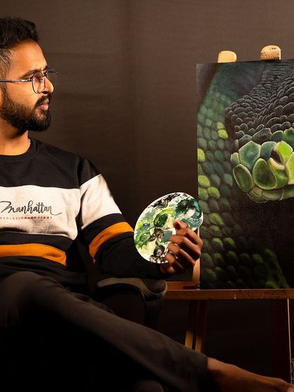 Art is everything to me. I grew up in namma Udupi and taught myself to draw by obsessing over each tiny detail. My thing is making hyper-realistic art that looks just like a hi-res photo, whether it’s a movie star or a street-side chai glass.