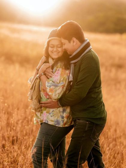 I have a special love for shooting during the golden hour. This collection showcases sessions bathed in the soft, warm light of late afternoon, creating a dreamy and romantic atmosphere that perfectly complements the glow of pregnancy. These photos are taken in open fields and natural landscapes to achieve a timeless feel.