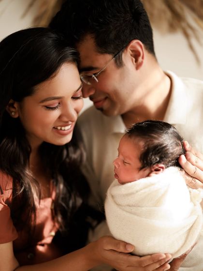 Hi, I’m Mridula. After 15 years and a thousand babies, I finally became an Amma myself! My son Caden—my Kulanthai—he’s my muse now. Amma is a bit extra, I started hoarding props before he was born. My husband and our dog Luca, we’re all part of this little circus. These days, I get why moms want to freeze every moment. It’s wild, it’s warm, and it’s made me pour even more heart into every photo.