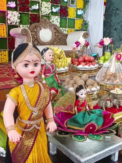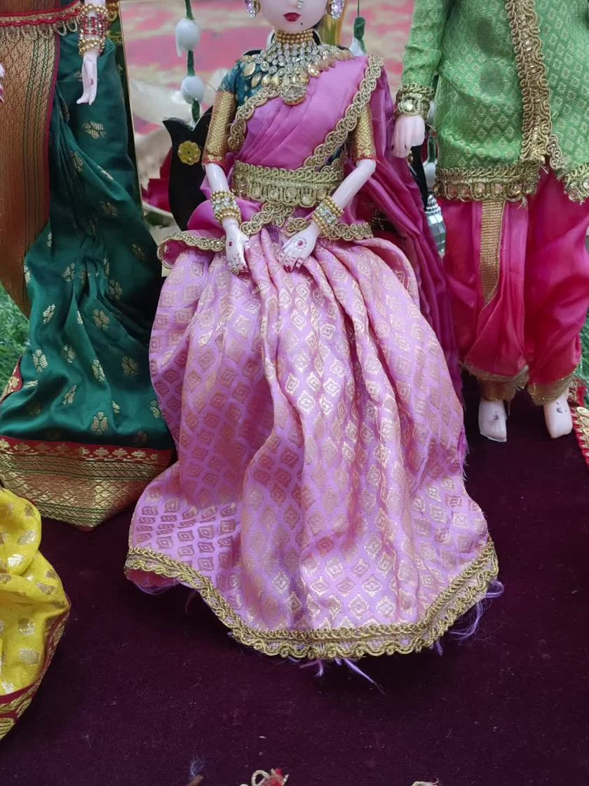 My handmade dolls are the heart of my decorations. I personally dress each one in beautiful, custom-stitched sarees, half-sarees, or dhotis, turning them into perfect representations of your family for any ceremony.