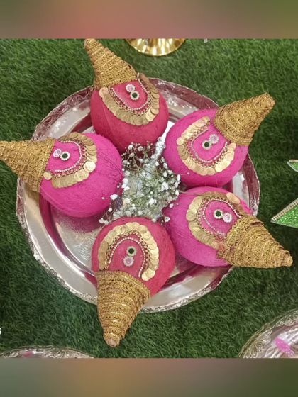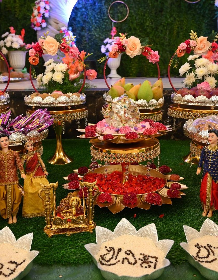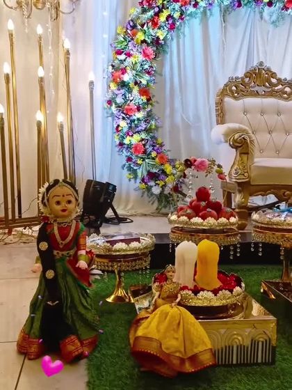 Celebrating a girl's transition to womanhood is a cherished tradition. I design vibrant and elegant plate decorations for half-saree functions and puberty ceremonies, using colorful themes, beautiful dolls, and traditional items to make the day unforgettable.