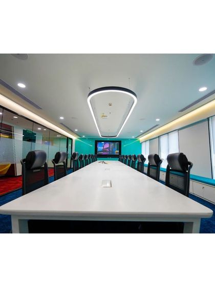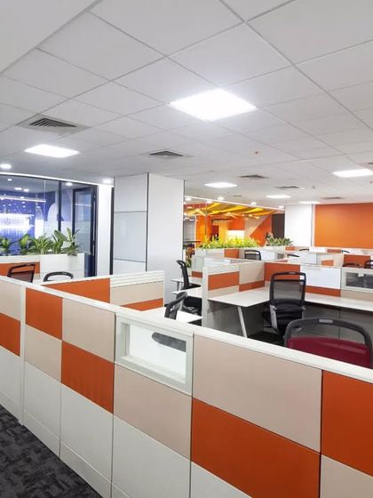 - Flooring: Heavy-duty nylon carpet tiles for work areas; Vitrified tiles for pantry and reception zones.