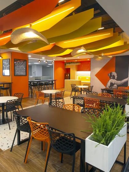 Vibrant Office Interiors - Our workspaces pop with color and light, built for collaboration and good vibes.