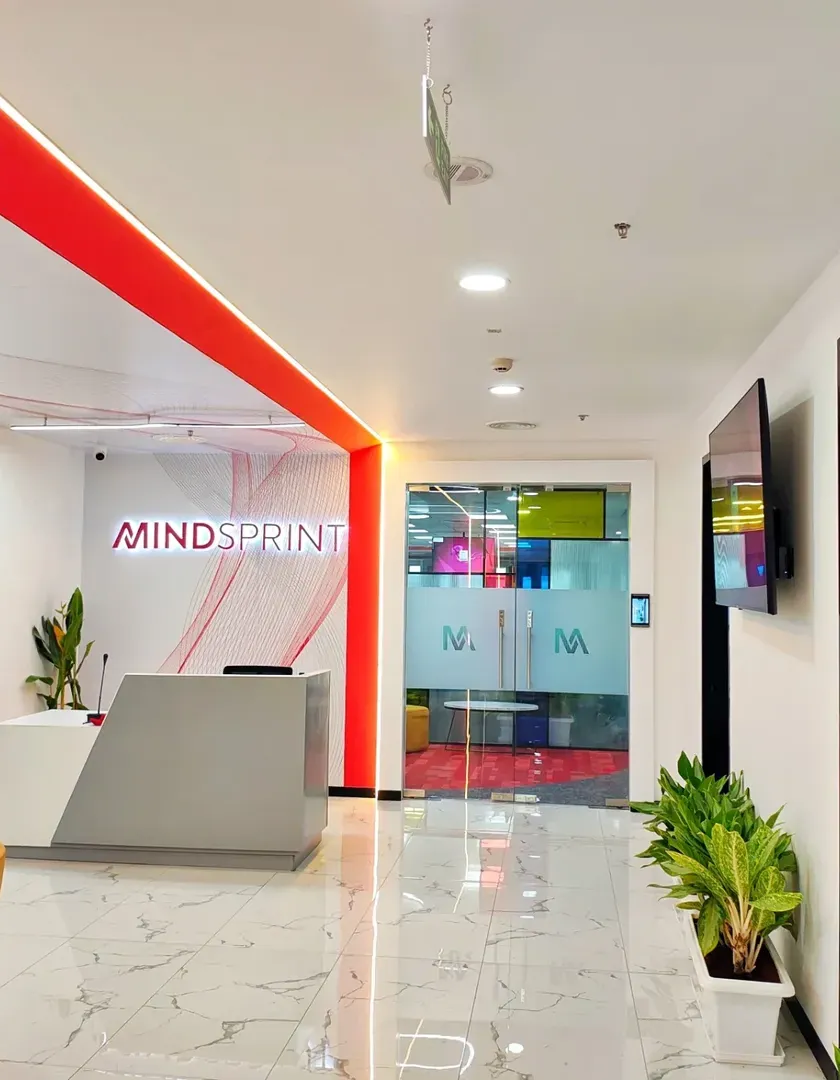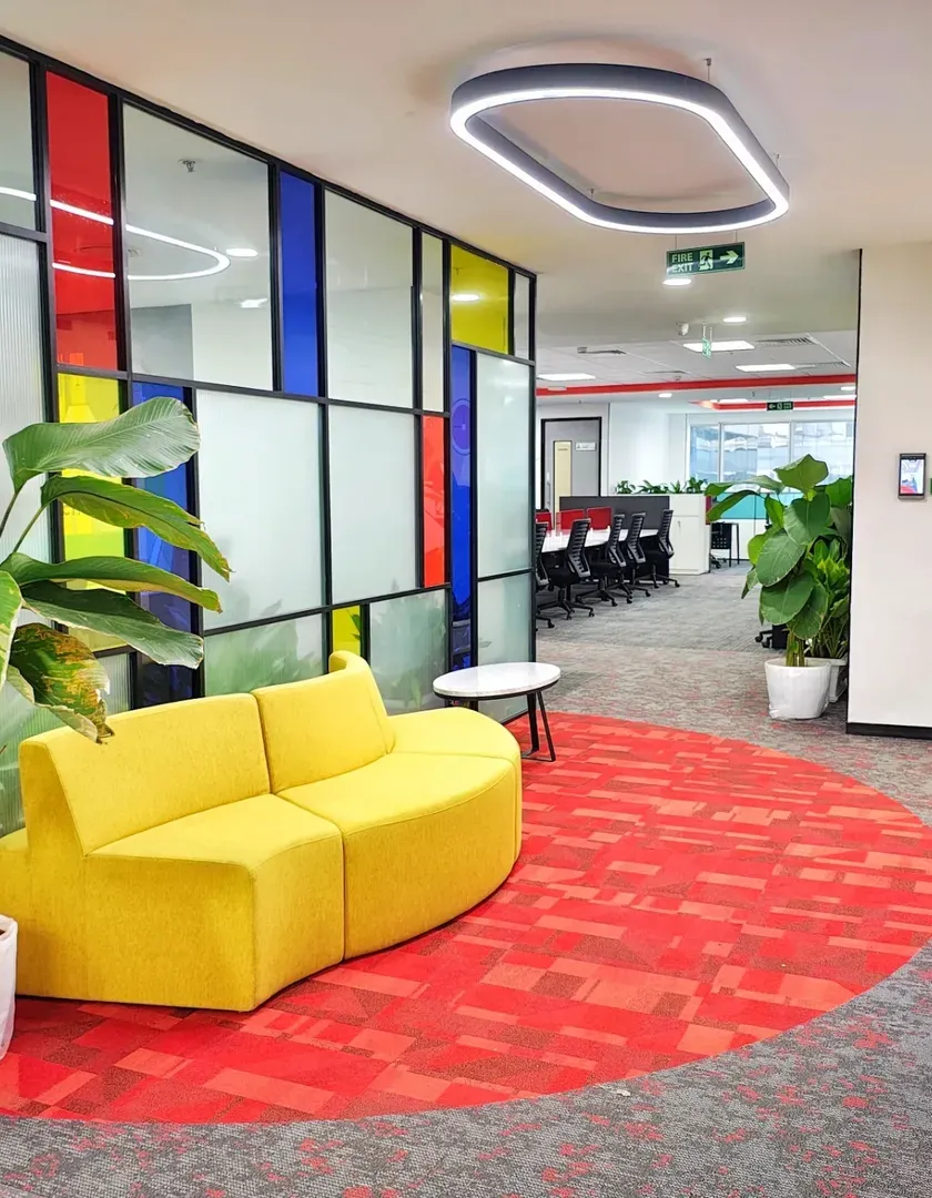 The entrance to an office is a client's first physical interaction with the brand. We design reception and waiting areas that make a powerful statement, using logos, brand colors, and custom art to create a memorable first impression that embodies the company's identity.
