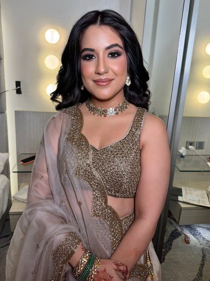Let's turn up the glam for your engagement, sangeet, or reception. I love creating show-stopping evening looks with sultry smokey eyes, sharp winged liner, and sculpted, glowing skin that will last all night.