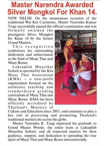 Mujhe bas यही martial art achha lagta tha chhotepan se. Parents mana karte the, shoes nahi, uniform nahi, par commitment tha. State, national, Maharashtra, Shaolin Temple China tak gaya, phir Thailand - Luktupfah Muaythai school. Silver Mongkol mila Khan 14 ke liye. Ye dedication aur asli Muay Thai, Muay Boran ka experience hai, jo main apne students ko dena chahta hoon. Real cheez hai, bas yahi hai.