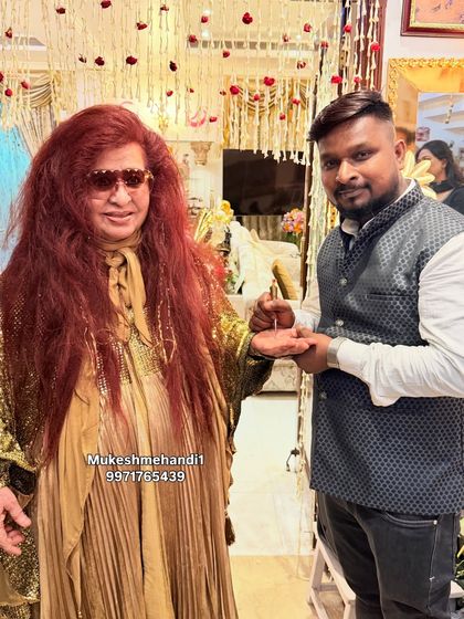 Namaste, main Mukesh. Mehandi artist bolte hain mujhe, par asli baat yeh hai ki main haathon pe kahaniyan sajaata hoon, khaas dulhanon ke liye. Jab bride khush ho jaati hai apni mehandi se, toh lagta hai, bas din safal ho gaya. Shahnaz Husain mam ke haath pe mehandi lagana bhi ek yaadgar pal tha mere liye. Ab ek team bhi hai, classes bhi chalti hain, aur har design mein poori shiddat dalta hoon.