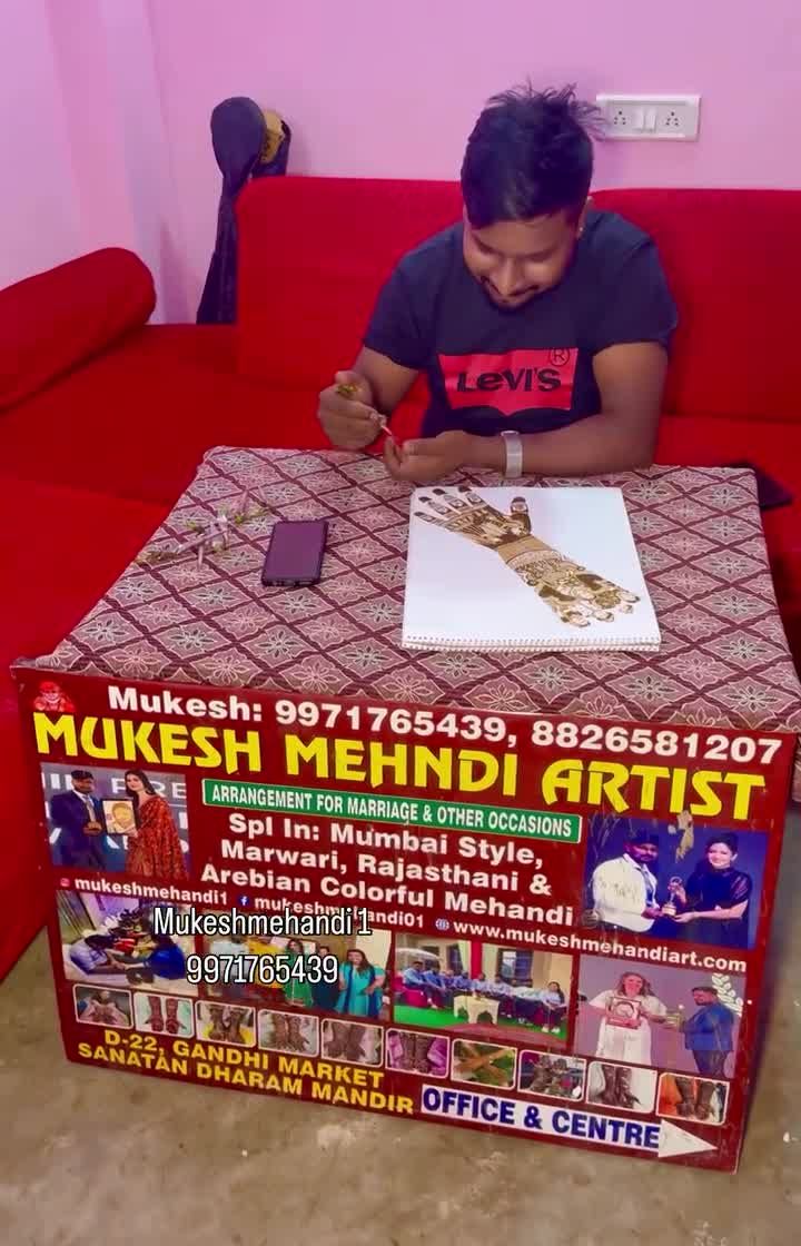Dekhiye, this is my studio in Janakpuri where you will learn. My classes are in-person because mehandi is best learnt with live, daily practice, and you will get guidance directly from me and my team.