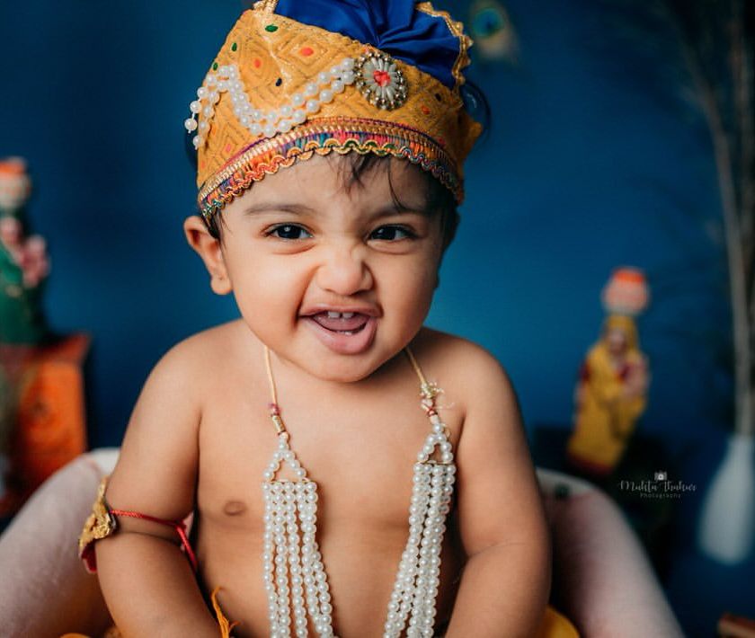 Celebrate your baby's first Janmashtami by transforming them into the adorable 'Bal Gopal'. I provide a complete setup in my Mumbai studio, including the yellow dhoti, pearl necklaces, peacock feather crown, and playful props like a flute and a pot of butter. These sessions are full of fun and 'masti' as we capture the divine and mischievous spirit of little Krishna.