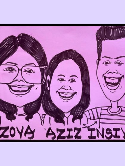 Here is a selection of my finished caricatures, shown without the models. This gallery allows you to focus on the artistic style, from classic black and white line work to fun group portraits, to see what best fits the vibe of your event.