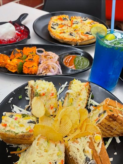 I serve a variety of Italian and Continental dishes, from cheesy pizzas and creamy pastas to loaded sandwiches. My unique Half & Half Pasta lets you enjoy two sauces in one bowl, and my Melting Sandwich is a must-try for all cheese lovers.