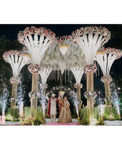 This is where the party happens! I specialize in transforming venues into glamorous spaces for your Sangeet and Reception. My focus is on creating the perfect ambiance with dramatic lighting, stunning stage designs, chic dance floors, and elegant seating arrangements. From fairy light canopies to crystal chandeliers and special effects, I ensure your evening celebration is nothing short of magical.
