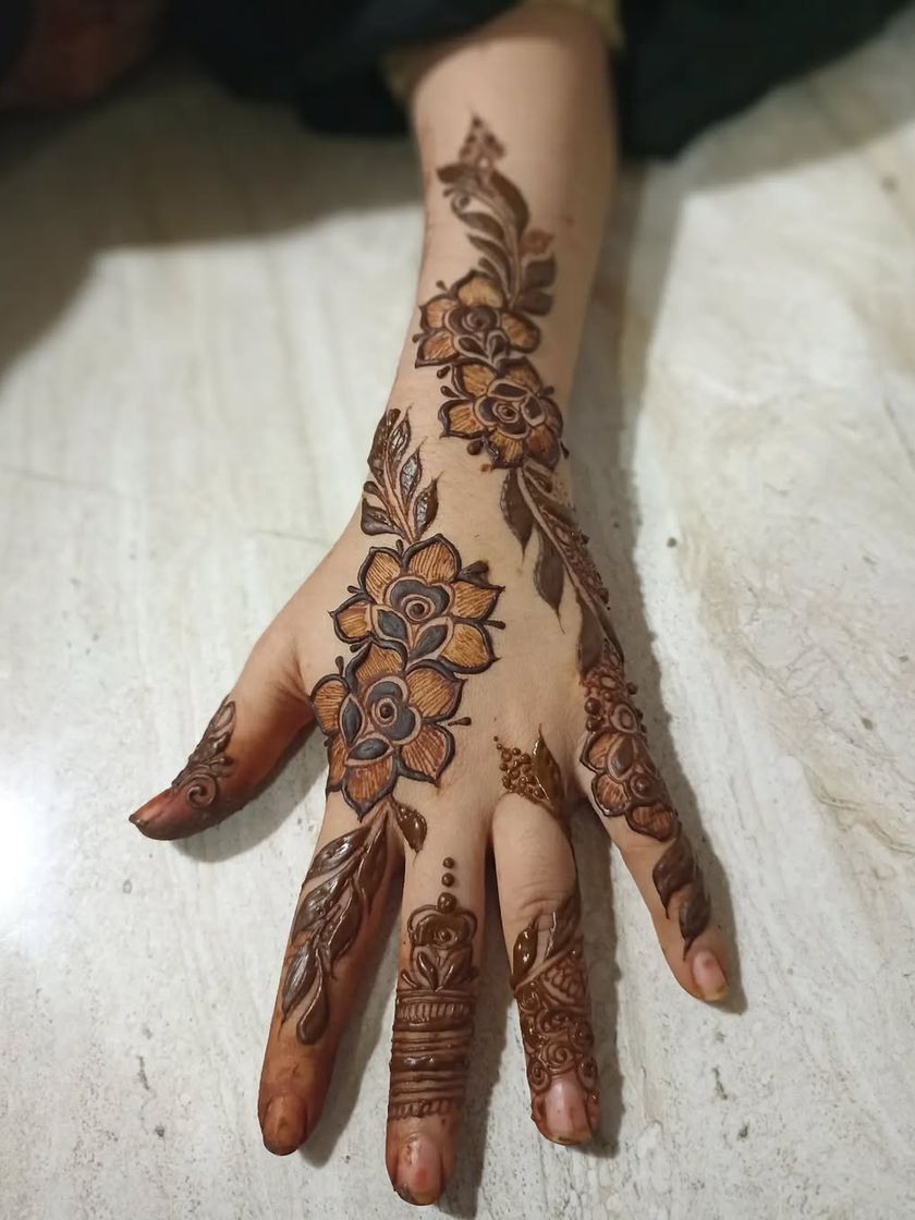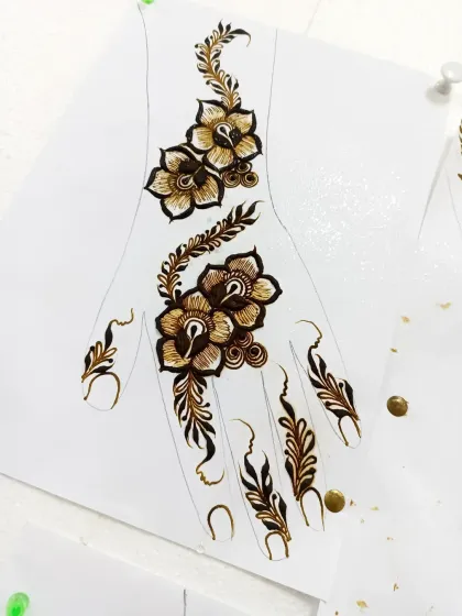Every artist starts with the basics. In my classes, we begin by practicing on paper templates to build your confidence before moving to real hands. This is where you will master everything from simple flowers and leaves to complex patterns.