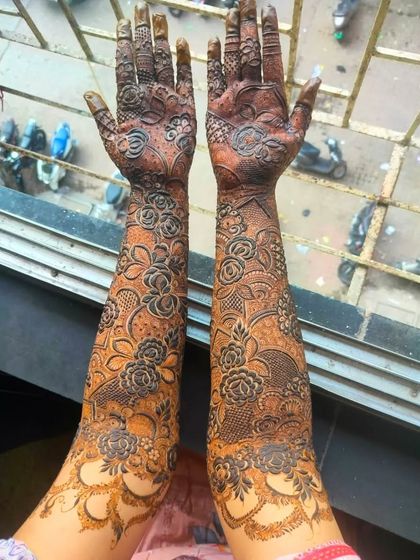 This is the heart of my 3-month Indian course. You will learn to create dense, intricate patterns perfect for weddings, including techniques like cutwork, detailed floral work, and full coverage designs for hands and arms.