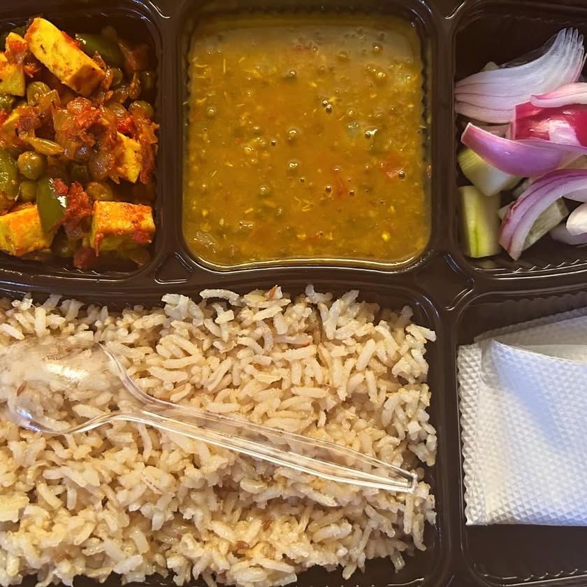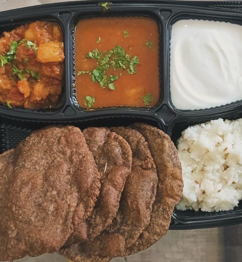 This is the heart of my service, the daily tiffin thali. Each thali always includes a dal that changes daily, a seasonal vegetable sabzi, fluffy rice, 3 soft rotis, and a fresh salad, ensuring you get a wholesome and different meal every day.