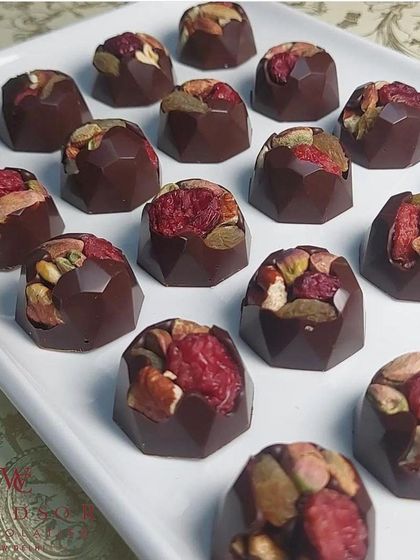 Explore my diverse range of handmade chocolates, crafted with premium Belgian and couverture chocolate. This collection includes everything from fruit and nut-filled bonbons and soft-centered truffles to classic milk, dark, and white chocolate pieces.
