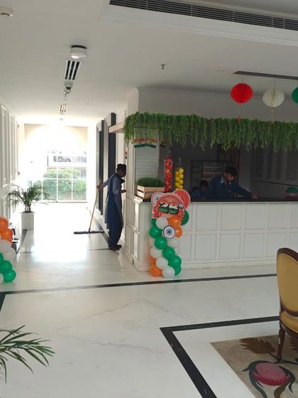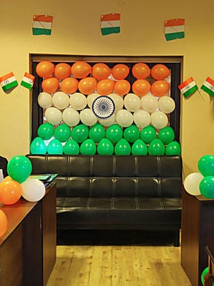 I go all out for national festivals in Delhi NCR. Think tricolor balloon arches at the entrance, flag-inspired backdrops, and desk corners brightened up with paper lanterns. I mix in kites and mini flags too, so the place feels full of pride. Tricolor balloon decoration for Republic Day is always a hit - looks fab, feels patriotic.
