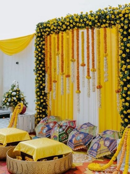 - Haldi ceremony decoration themes? Yellows, marigolds, quirky props - the whole vibe is happy and bright.