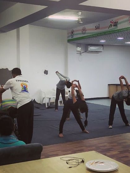 Holistic Approach: Mind & Body - Shooting with yoga integration - focus, balance, shanti (peace). Yog Guru helps build mental strength, not just aim.