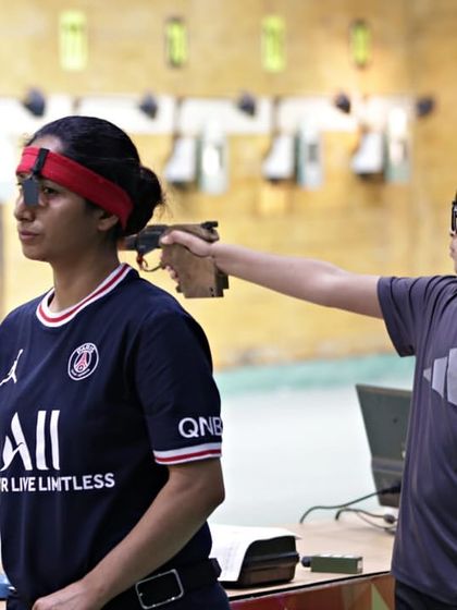 Holistic Approach: Mind & Body - Shooting with yoga integration - focus, balance, shanti (peace). Yog Guru helps build mental strength, not just aim.