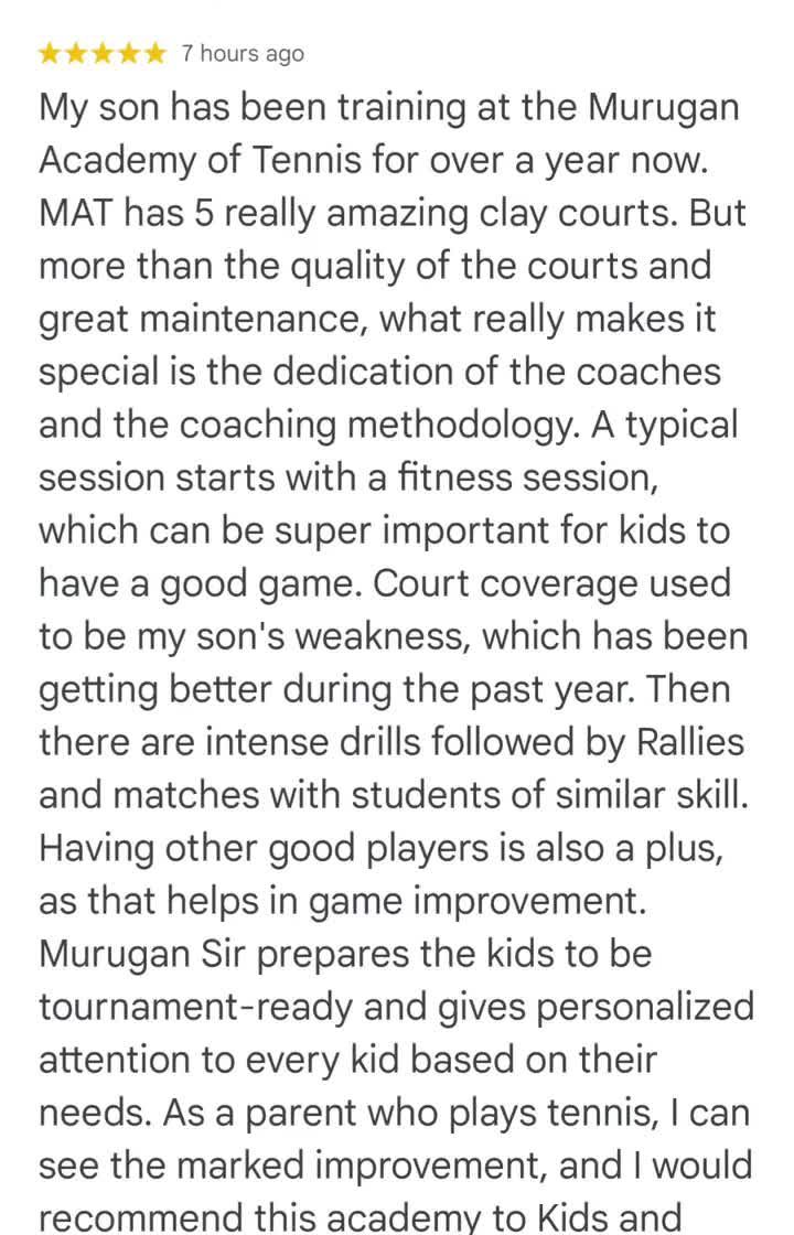 The trust and feedback from our parents mean the world to us. This section features testimonials and reviews from families who have been part of our academy, sharing their experiences with our coaching, facilities, and community.
