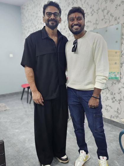 I have been fortunate to work with and choreograph for many of the biggest stars in the South Indian film industry. This includes legends like Dr. Shivarajkumar and Kiccha Sudeep, and popular actors like Dhananjaya, Rashmika Mandanna, and many more. Here are some memorable moments with the amazing artists I've collaborated with.