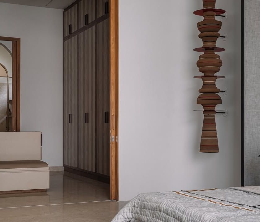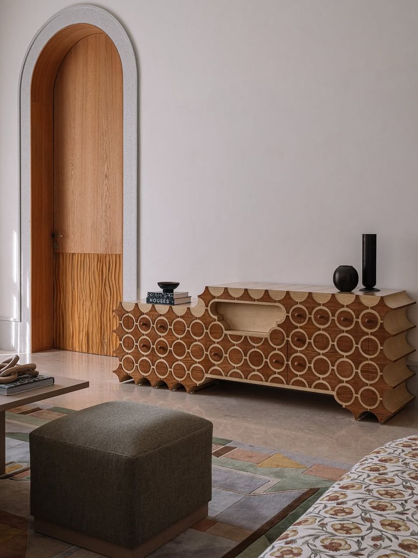 We believe storage should be an opportunity for expression, not just a necessity. Our custom wardrobes, bar units, and cabinets feature unique details, from intricate inlays and bespoke handles to surprising pops of colour, often inspired by traditional forms like Chettinad doors.